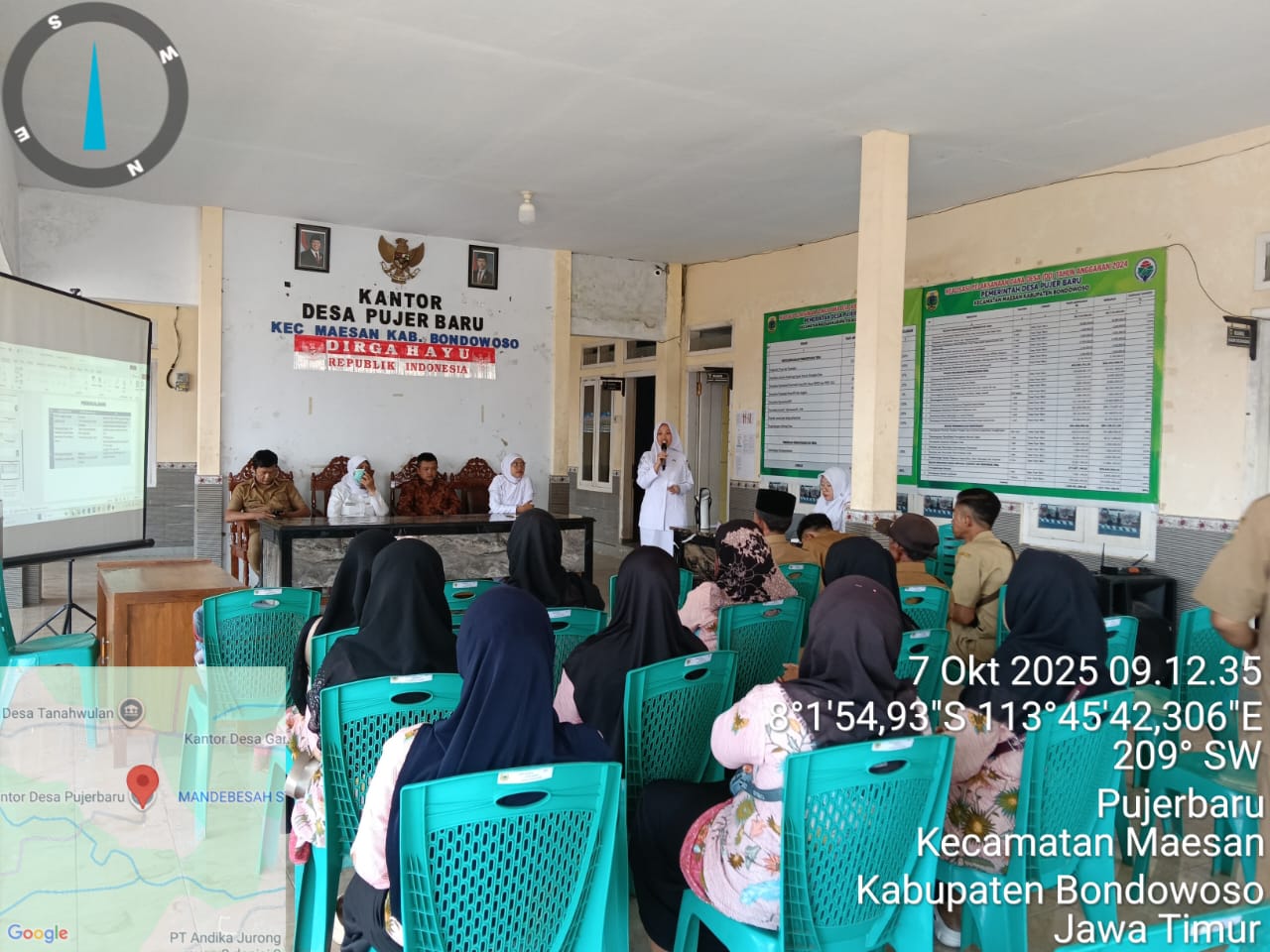 UPTD Puskesmas Maesan melakukan kegiatan Musyawarah Masyarakat Desa. Bertempat di Balai Desa Pujer Baru, dihadiri oleh Kepala Desa dan Perangkat Desa, Ketua TP PKK, Tokoh Masyarakat, Tokoh Agama. Acara ini dilaksanakan pada Hari Selasa, 7 Oktober 2025. MMD adalah pertemuan antara perwakilan warga desa, tokoh masyarakat, dan petugas Puskesmas untuk membahas hasil Survei Mawas Diri (SMD) dan merencanakan penanggulangan masalah kesehatan yang diidentifikasi dalam SMD. Adapun tujuan dari MMD yakni: