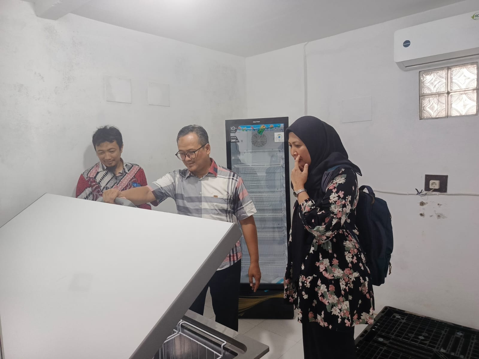 Setelah materi diberikan kepada penjamah makanan, Petugas Kesehatan Lingkungan Dinas Kesehatan Kabupaten Bondowoso didampingi Petugas Puskesmas Maesan melakukan Inspeksi Kesehatan Lingkungan pada dapur, mulai dari alur masuk hingga keluar, gudang penyimpanan, ruang produksi sampai dengan ruang pembersihan dan pembuangan limbah akhir.