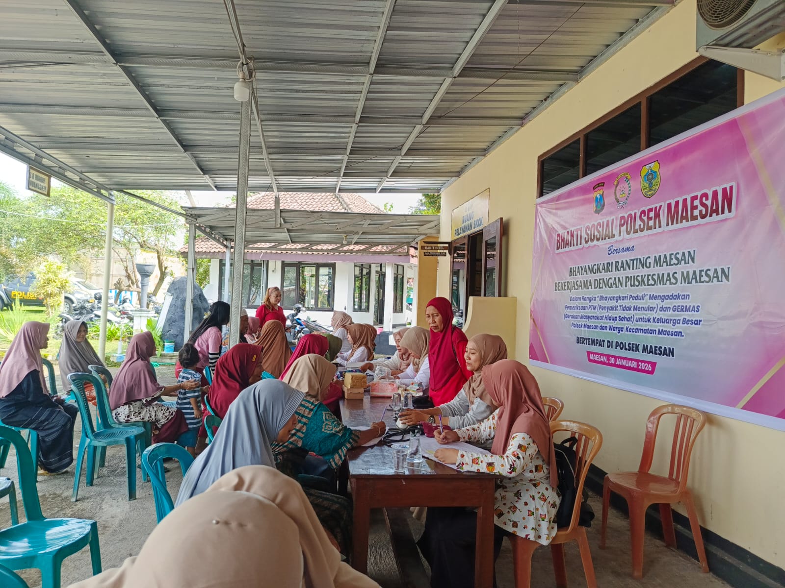 Dalam rangka membudayakan Gerakan Masyarakat Hidup Sehat atau GERMAS, Polsek Maesan bersama UPTD Puskesmas Maesan mengadakan kegiatan Pemeriksaan Kesehatan dan senam berlangsung di halaman Polsek Maesan pada Hari Jum'at, 30 januari 2026.